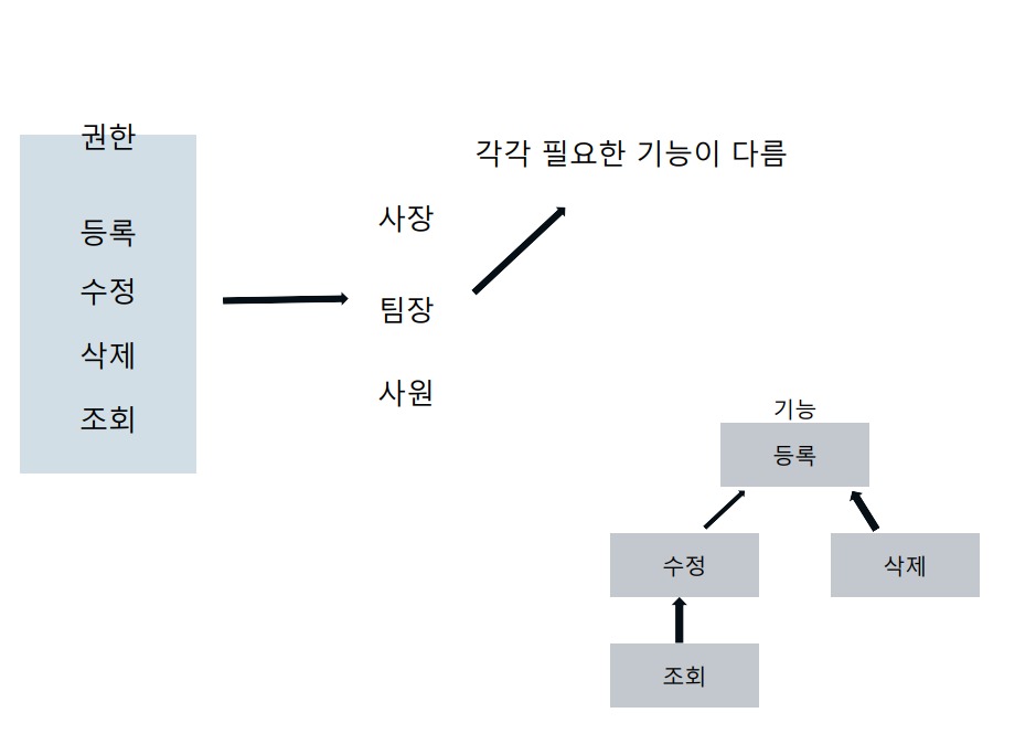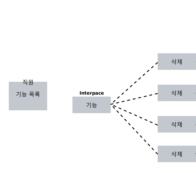 이런 경우가 있다고 생각해 봅시다 이런 경우에 각각의 인원들이 필요한 기능들이 다를 수 있습니다 사장은 모든 기능을 사원은 조회 기능만 필요하다는 상황이 생길 수 있습니다 이런 경우세 만약 상속을 사용해서 구현하려고 한다면 오른쪽 아래처럼 상황에 따라 상속을 계속해서 만들어야 할 것입니다 지금은 기능이 몇 개 없지만 기능이 100개가 넘는다면 어떨까요?? 끔찍할 것입니다 이것이 바로 상속의 문제입니다 이런 상황을 물론 override로 해결할 수도 있을 것입니다 하지만 결국 결론은 똑같습니다... 각각 다른 상황에 맞게 override 해주는 것도 기능이 많아진다면 쓹데없는 일이 늘어나는 건 똑같은 겁니다 그래서 이런 상황에서 Interpace 를 사용하자는 것이지요