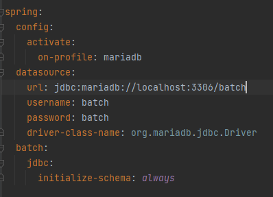 스프링 배치 메타 데이터 스프링 배치의 실행 및 관리를 위한 목적으로 여러 도메인들(Job , Step , JobParameters……)의 정보들을 저장 , 업데이트 , 조회할 수 있는 스키마 제공 과거 , 현재의 실행에 대한 세세한 정보 , 실행에 대한 성공과 실패 여부 등을 관리 DB 와 연동할 경우 필수적으로 메타 테이블이 생성 되어야 함 스키마 생성 설정 수동 생성 쿼리 복사 후 직접 실행 자동생성 👍spring.batch.jabc.initalize-schema 설정 ALWAYS 스크립트 항상 실행 RDBMS 설정이 되어 있을 경우 내장 DB 보다 우선적으로 실행 EMBEDDED 내장 DB일 때만 실행되며 스키마가 자동 생성됨 , 기본값 NEVER 스크립트 항상 실행 안함 내장 DB 일경우 스크립..